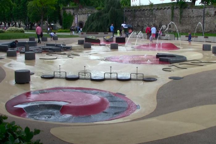 Спустившись со стены, вначале попали в уютный детский уголок — водный парк, который прятался за ней. Вот где раздолье детворе в жару — плескайся, сколько твоей душе угодно: