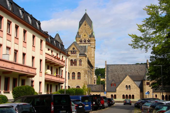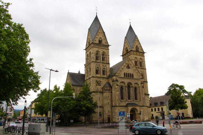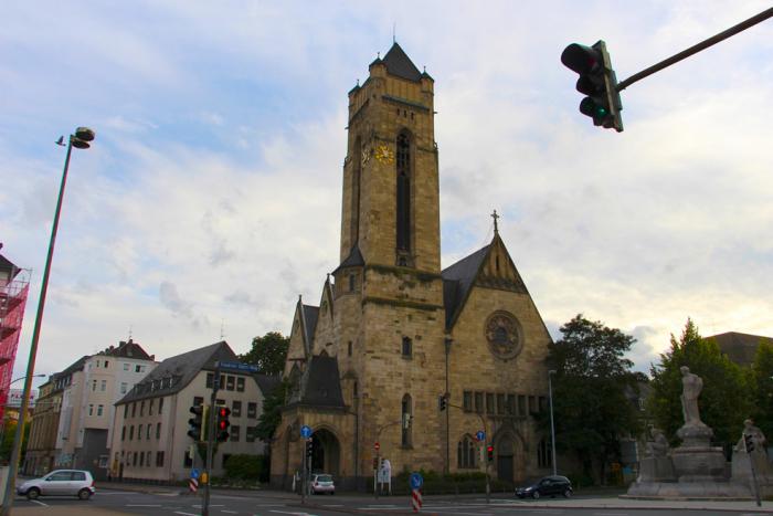На пересечении Friedrich-Ebert-Ring и Hohenzollernstrasse взглянули на евангелическую церковь Христа (Christuskirche), построенную здесь в начале XX века: