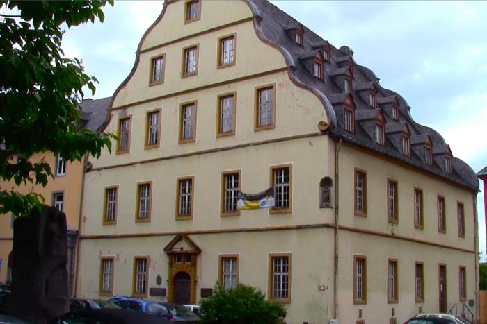А между тем история у него долгая и не банальная, ведь это Резиденция Тевтонского (Немецкого) ордена (Deutschordenskommende Koblenz). Несмотря на нынешнюю принадлежность здания городскому муниципалитету, оно и сегодня отмечено орденским крестом, подтверждающим рыцарское происхождение: