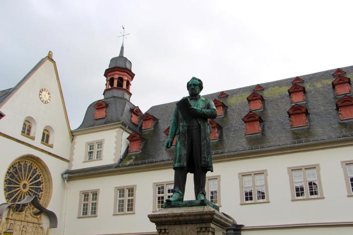 Массивное строение, воздвигнутое в начале XX века в позднероманском стиле с элементами готики, словно отражает мощь Германской империи того времени. Аналогичное впечатление производит статуя императора Вильгельма I на «Немецком углу», но до неё мы ещё доберемся, а пока будем обследовать подступы к историческому сердцу Кобленца.
