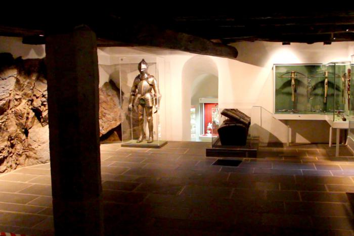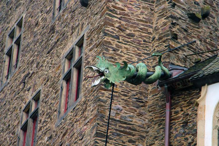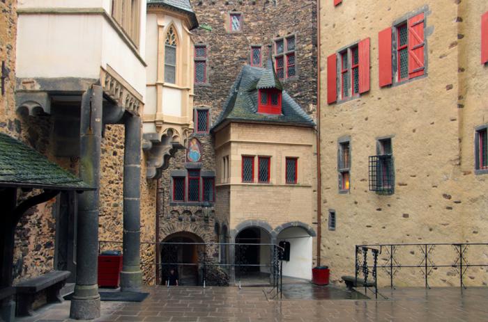 Чтобы взглянуть на внутренние помещения замка, нам пришлось скоротать полчасика — первая экскурсия начинается в 10 утра. Выше опубликованные фотоснимки есть результат этого получасового ожидания. Экскурсия по замку с изложением его истории на немецком или английском языке, стоит 9€. Отсутствие в перечне предлагаемых услуг «великого и могучего», заставило нас сделать выбор в пользу немецкой группы, что позволило сыну на короткое время стать моим переводчиком. Но большее удовольствие, нежели от самой прогулки по Эльцу, мы тогда получили от нашего гида – яркая экспрессия, помноженная на мимику, свойственную только непревзойдённому «мистеру Биму» или нашему Юрию Аскарову…, о-о-о, это была настоящая актёрская игра! Причём это не сарказм, или, упаси Бог, насмешка по отношению к молодому, и явно увлечённому своей работой, немцу, это – искреннее впечатление, и поверьте, доброе.