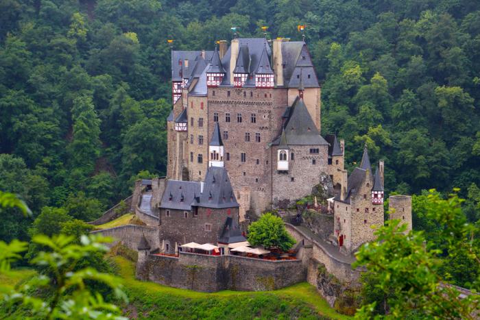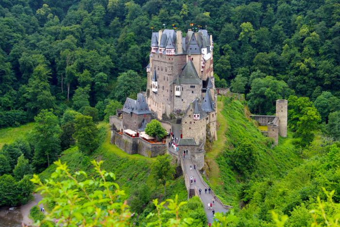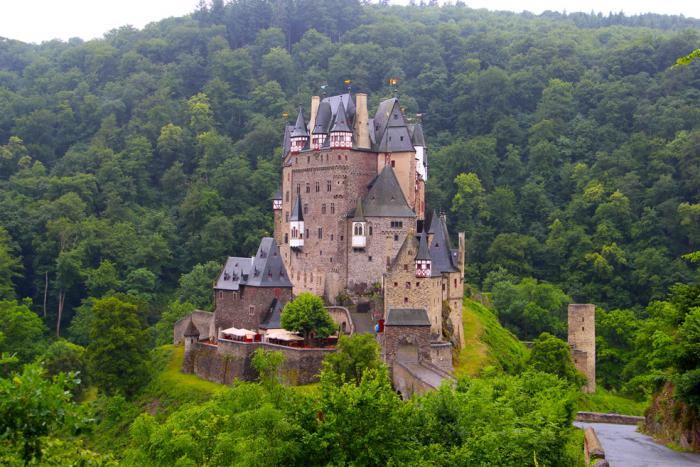 Замок Эльц (Burg Eltz) стоит на скале, огибаемой небольшой речкой Эльцбах: