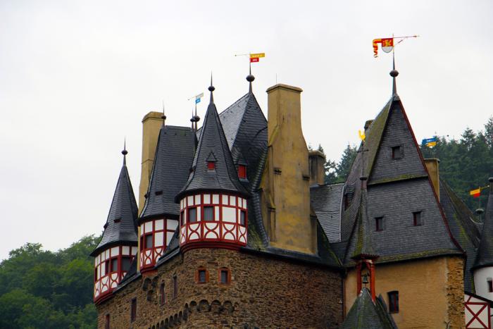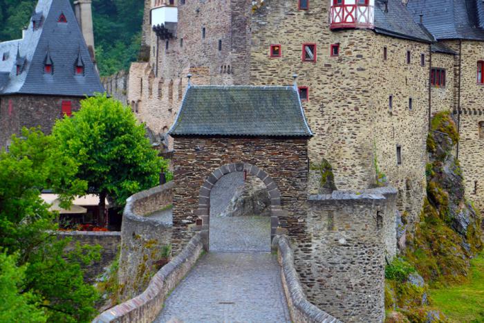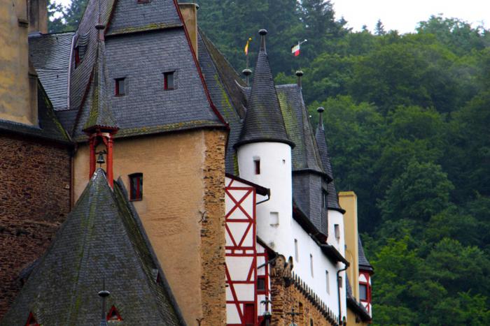 Его история началась предположительно в XII веке, многократно достраивался и перестраивался, и до наших времён замок сохранился в очень приличном состоянии. Этот факт обусловлен, видимо, тем, что особого стратегического значения для Германии Эльц не имел, в боевых действиях практически не участвовал. Миновали его и разрушительные бомбардировки последней мировой войны, благодаря чему мы сегодня можем наслаждаться его средневековой величавостью. Единственные осадные действия замку пришлось пережить в первой половине XIV столетия, когда его штурмовали войска архиепископа трирского и курфюрста Болдуина Люксембургского (ну это тот, помните, что в Кобленце на мосту строго взирает на нерадивых туристов и остерегает их от нарушения общественного порядка). Причиной осады стала так называемая «Эльцская вражда» — противостояние ряда имперских рыцарей — владельцев замков расширению территорий архиепископа, являвшегося в то время полноправным хозяином местных земель. Возглавил этот союз заговорщиков тогдашний владелец Эльца — Иоганн фон, соответственно, Эльц. Захватить укреплённый замок дерзкого фон Эльца с наскока войскам архиепископа не удалось, вследствие его оч-ч-чень удачного расположения. Тогда, по приказу Болдуина, на скале напротив была возведена крепость Трутцэльц (Trutzeltz)…