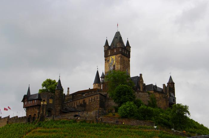 Пробравшись в центр, мы бросили «Аркашку» на кстати освободившееся прямо перед нами место на парковке, у самого подножия холма, верхушку которого венчает бывший имперский замок Райхсбург (Reichsburg Cochem):