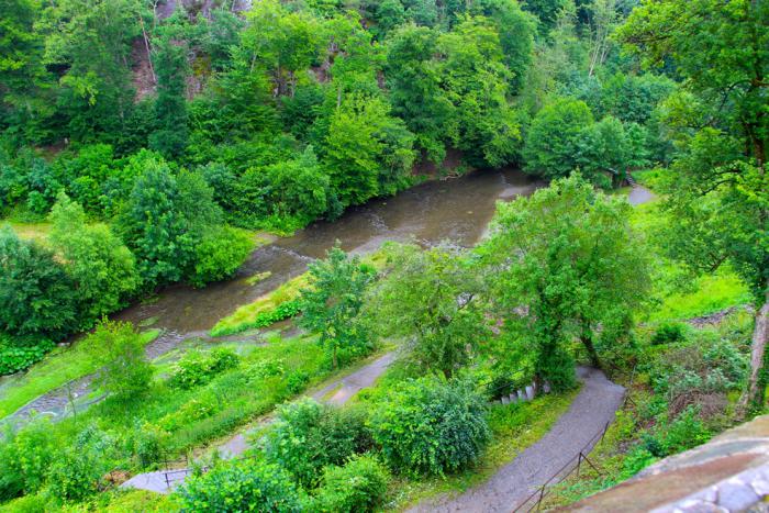 Если опустить недостатки пешеходной кампании, то уже перед спуском открываются превосходные виды на романтичный Эльц, который появляется неожиданно в проёме от словно расступившихся, деревьев…