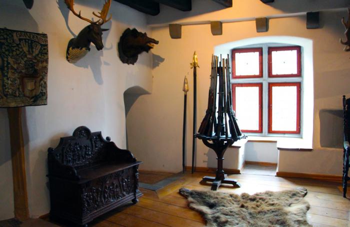 Съёмки и фотографирование внутри замка запрещены, и сопровождавший нас гид старался строго следить за соблюдением этого правила, но его профессиональная увлечённость, каюсь, позволила нам кое-где запрет обойти. Поделюсь немногим, что нам удалось заснять: