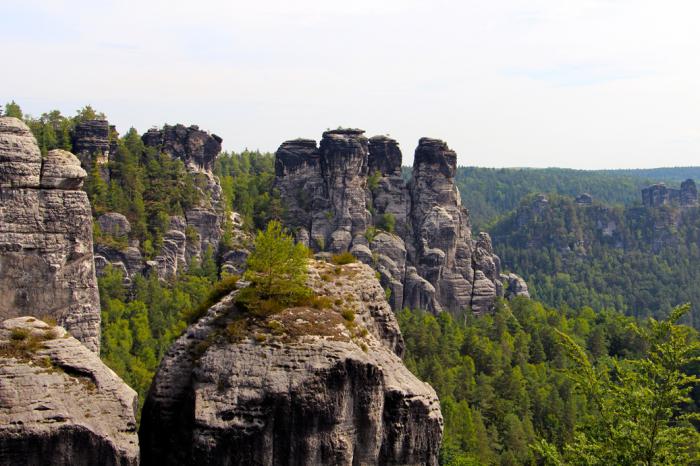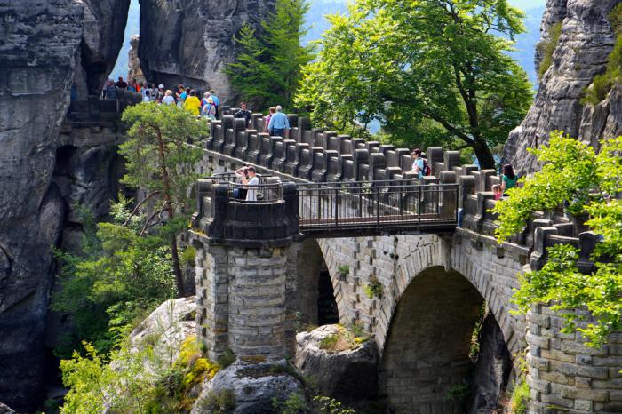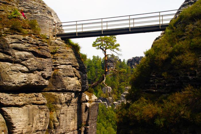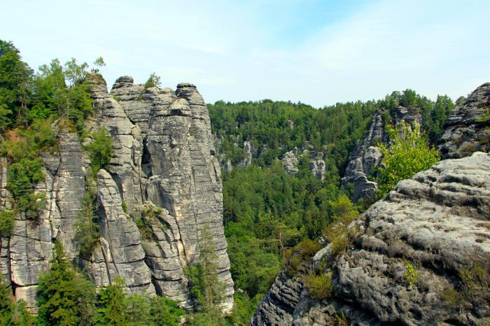 Неприступные и отвесные, они служили природными укреплениями старой крепости Нойратен (Neurathen), руины которой можно увидеть, если пересечь ущелье Mardertelle по арочному Basteibrücke: