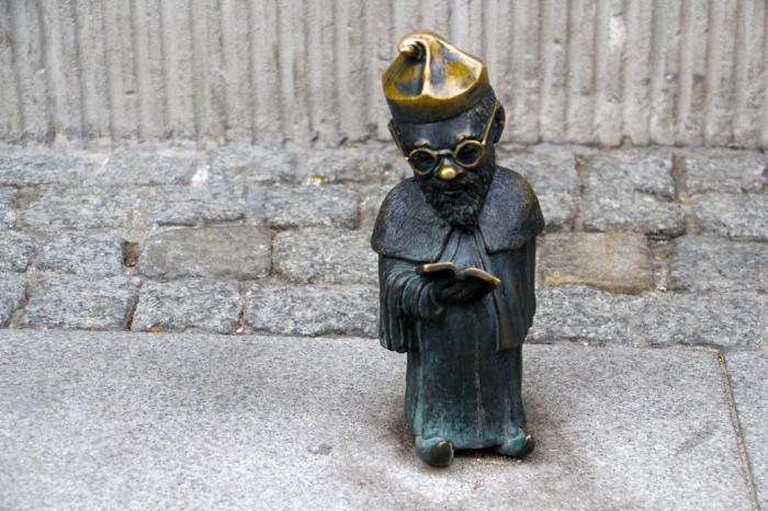 По большому счёту, на этом месте можно было-бы рассказ о вечернем Вроцлаве и закончить, но куда-же без его гномов. Эти крошечные сорванцы обладают редкой способностью появляться неожиданно под ногами в самых разных местах, отвлекая внимание от других достопримечательностей на себя. И своим появлением заманивают тебя всё дальше и дальше, вглубь городских улиц.