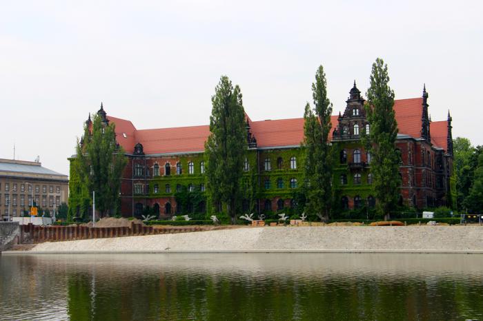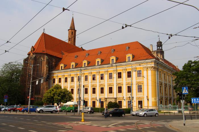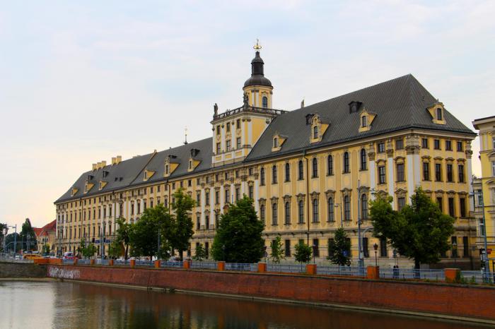 С выходом на Поморский мост арт-хаус уступил место классике – набережную противоположного берега украшало красивое здание Вроцлавского университета (Uniwersytet Wroclawski), основанного в 1702 году: