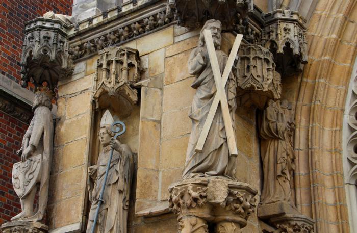 Слегка запутавшись в переулках, взглянули на карту и поняли, что уклонились от маршрута. Подкорректировались, и вскоре оказались у стен одного из старейших храмов Вроцлава — собора Святой Марии Магдалины (Kościół św. Marii Magdaleny):