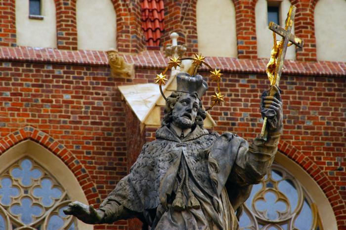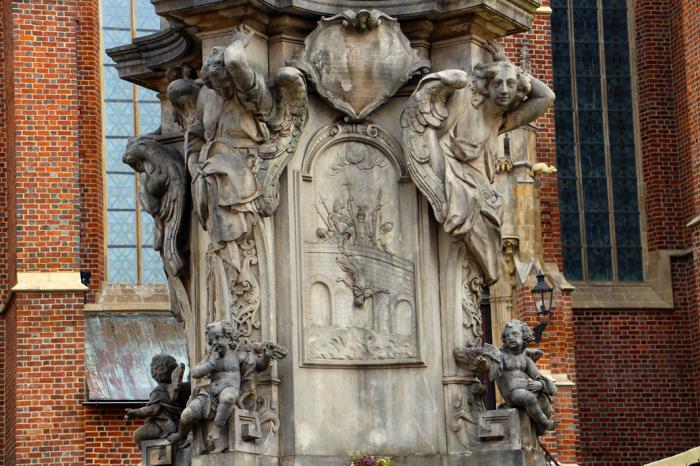… известному..., впрочем, чего это я? Чем известен этот святой и так все знают, а вот чем интересен вроцлавский памятник? Четыре стороны его основания, выполненные в форме креста, отображают сцены из жизни Яна Непомуцкого, на представленной фотографии – сбрасывание его в реку по приказу короля Вацлава: