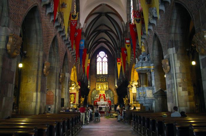 Собор стал первым готическим храмом Польши, на его строительство понадобилось, без малого, столетие – с 1244 по 1341 годы. Вот его готика мне показалась отнюдь не довлеющей. Больше того, устремлённые ввысь изящные башни, делают собор, я бы сказал, легковесным. Вглядываясь в их, почти стометровую высоту, украшенную каменной вязью, замираешь от восторга: