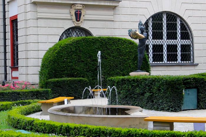 … бывший иезуитский храм XVII века. Рядом проходит улица Szewska… Пройти мимо заманчиво приоткрытой двери, даже если ты голоден — это не в моих правилах. Так и здесь — вышли на Szewska и оказались у открытой ажурной калитки. Ну как не заглянуть? Вошли… и оказались в ухоженном саду бывшей резиденции крестоносцев-госпитальеров, а ныне библиотеки «Оссолинеум», носящей имя основателя – графа Оссолинского (Zakład Narodowy im. Ossolińskic):