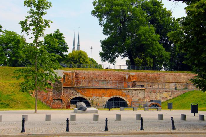 Вдалеке видны остатки средневековых городских укреплений, носящих название Bastion Ceglarski: