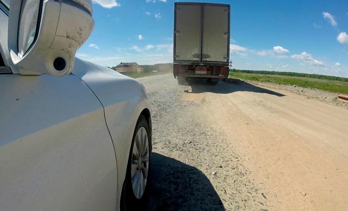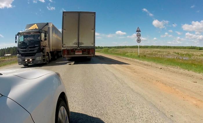 Даже если покрытие позволяет обогнать плетущуюся впереди «фуру», ограничение обгона заставляет легковушки собирать пыль от впереди идущих «длинномеров».