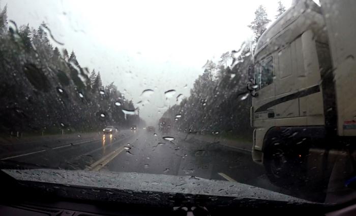 Попали под хороший ливень, который не отпускал нас до границы с Беларусью.