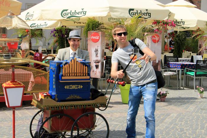 К сожалению время неумолимо бежало вперёд, и как бы нам не нравилось в польской столице, дорога звала дальше. Сфотографировавшись напоследок с улыбающимся шарманщиком…