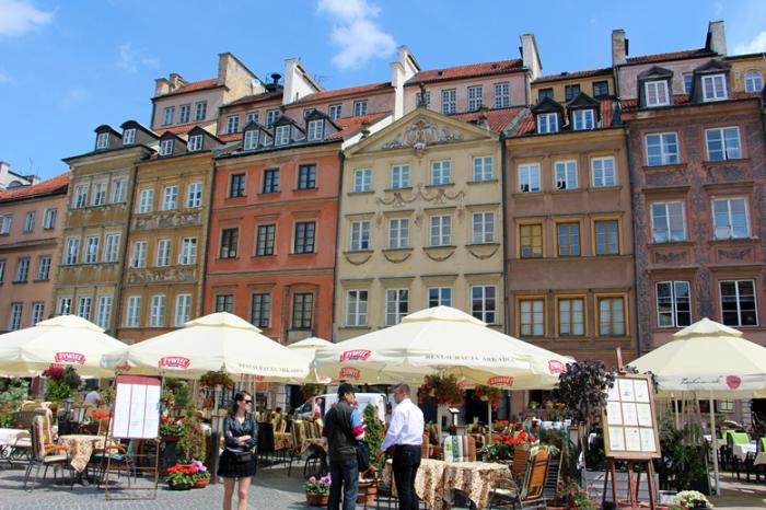 … наше, съёжившееся было настроение, расправило плечи. Площадь – одно из самых ярких мест в Варшаве. Архитектура, разноцветье домашних фасадов, цветов, художники, музыканты, уличные рестораны и кафе вызывают праздничные эмоции: