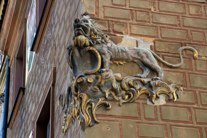 Всё просто – тогда здания не имели номеров и поляки, не мудрствуя лукаво, украшали их какой-нибудь отличительной деталью и дом получал название, очень удобно для ориентирования.