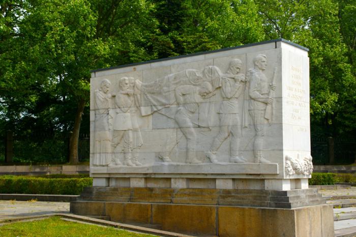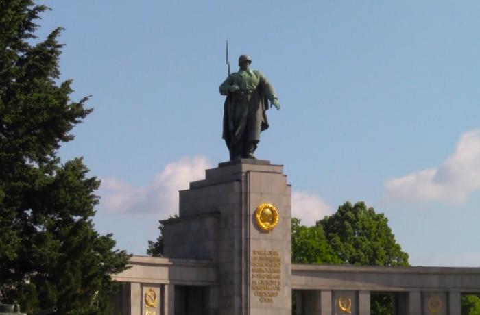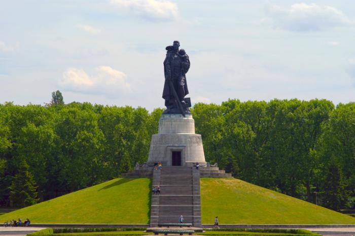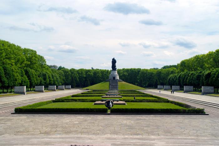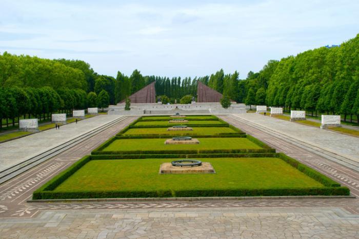 Место, священное для каждого советского человека. Более 7000 советских солдат и офицеров захоронены здесь. Скульптуры Родины-матери и воинов, склонивших головы и преклонивших колени в скорби о погибших сразу создают в душе чувство благоговения перед всеми погибшими во время Великой Отечественной во имя мира. Здесь даже берёзы печально склонили до земли свои тяжёлые, усыпанные изумрудными листьями, ветви. Плакучие берёзы были специально высажены здесь как напоминание о Родине. Отрадно, что здесь царит чистота, содержание мемориала возложено на власти Берлина. Соблюдение порядка контролируется нарядами полиции, при нас патрульная машина приезжала дважды.