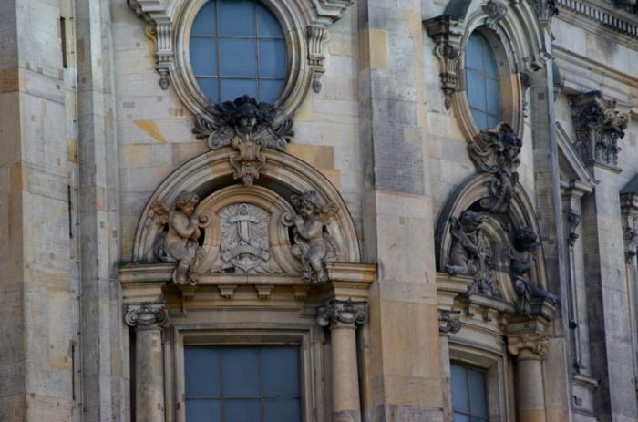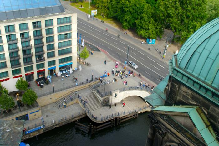 Покинув «Алекс» мы вышли на набережную Шпрее, где перед нами предстала массивное здание Берлинского кафедрального собора (Berliner Dom), богато украшенное скульптурами и лепниной: