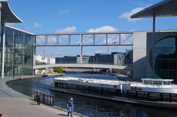 От площади Республики по набережной Шпрее, мимо современных парламентских зданий — домов Пауля Лёбе и Марии Элизабет Людерс…