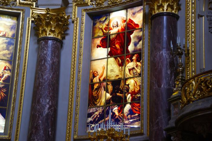 Внутреннее убранство собора было не менее привлекательным, чем наружное. Особенно в церквях мне нравятся витражи, здесь они были очень красочными: