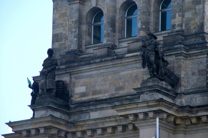 Сегодня Рейхстаг отреставрирован, бОльшая часть надписей советских солдат находится в его внутренних помещениях, куда попасть можно только при посещении здания в составе экскурсионной группы. В 2002 году, как я узнал из Википедии, вопрос об удалении надписей ставился в бундестаге, но большинством голосов предложение было отклонено. Перед поездкой я пытался забронировать билеты на посещение этого исторического здания через Интернет, но безрезультатно. Причиной тому, как я понял, явился слишком короткий период времени на момент бронирования, оставшийся до нашей поездки.