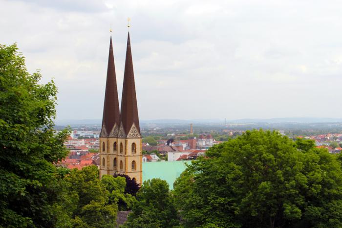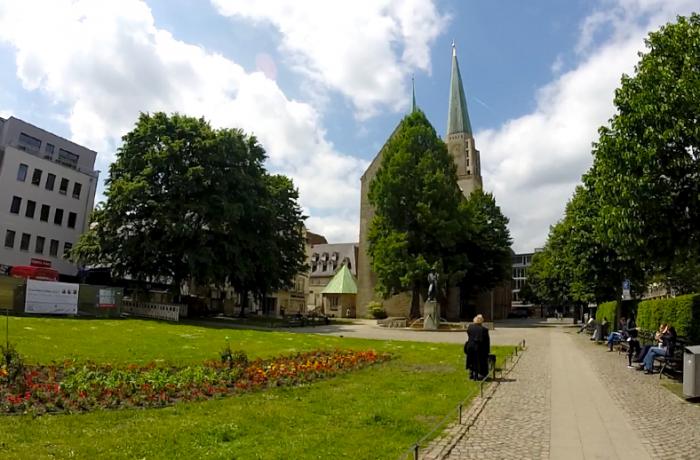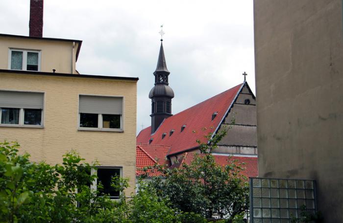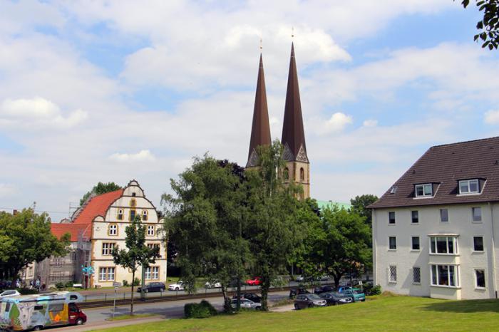 Дорога к замку пролегала мимо одной из основных городских достопримечательностей — церкви Святой Марии (Neustädter Marienkirche), являющейся ценнейшим памятником готической архитектуры Билефельда. Построен храм в XIII веке, башни Marienkirche взмывают ввысь на 78 метров.