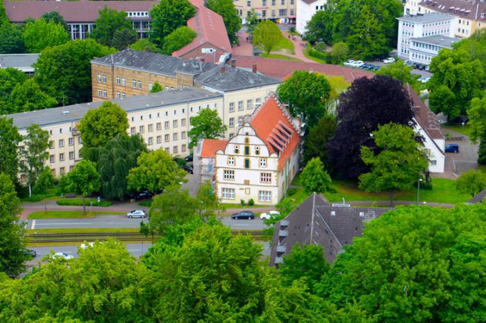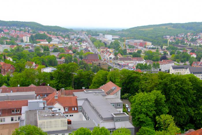 Историю свою город ведёт с 1214 года, так, что уже сам возраст вызывает уважение. Заочное знакомство с городом я обычно начинаю с названия. Так вот дословно Билефельд переводится как «Белое поле». Назвать его с первого взгляда «полем», а уж тем паче «белым», язык не поворачивается. В нём много зелени (ещё бы, город-то расположен в Тевтобургском лесу) и, если взглянуть сверху, «рыжих» крыш. Это превалирующие цвета: