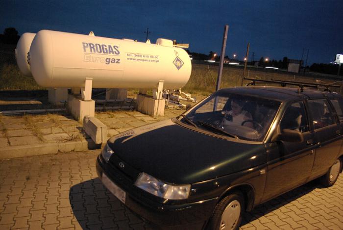 А рядом бочка, газом заправляться. Откатили к ней, несусь платить в кассу за газ, а там — рубли за газ не принимаем, только белорусские, вон рядом, окошко обмена валют. Меняю, несусь обратно, на все, до конца. Остается со сдачи чуть более 500 белорусских рублей. Заправили, включаю зажигание — завелась! Тут же мысли — нас ждут, возвращаться не хочется, машина на газу заводится, в Европе газа полно, если заправляться через каждые 200 км, то запаса баллона хватит. Принимаю решение: Все — едем!