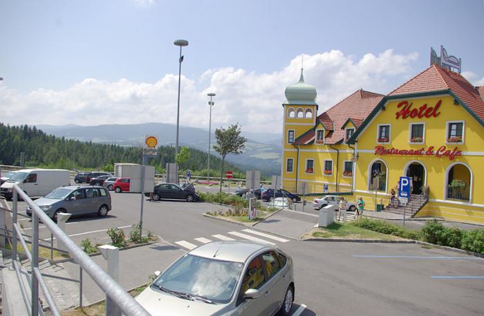 А вот и на заправку поворачиваем. Ну все! ура! Но, оказывается, здесь не работают компрессоры, закрыли на профилактику, уже отключили их. Австриец(не запомнил его имя) говорит, что эта была по пути, поэтому и заехали, а та, до которой хотел дотянуть, находиться немного дальше. Это по телефону его жена передавала/переводила слова.