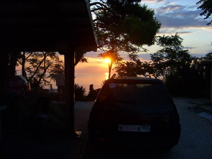 Машинка смотрелась знатно, развернутая посреди полосы (я уже назад сдал, чтоб не мешать проезжать машинам, хотя их было ничтожно мало), среди солнечной улицы, на фоне горшков с цветами, стоявших на обочинах дороги, да и был это все же жилой массив, а позади виднелось море!). Переведя дыхание, поехали к пункту назначения, благо он оставался недалеко.