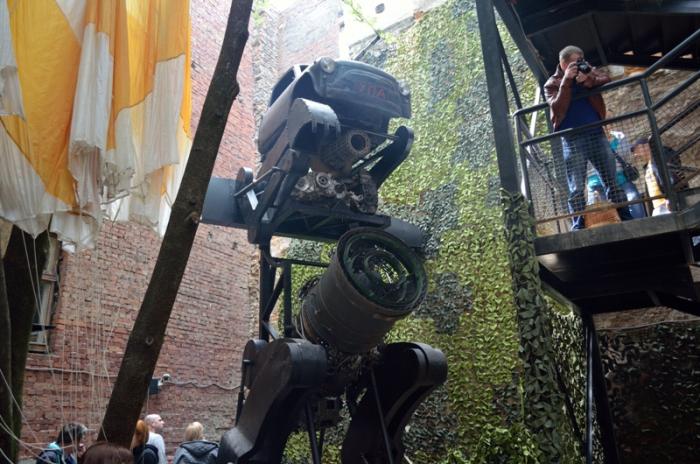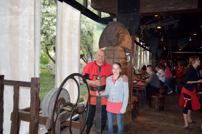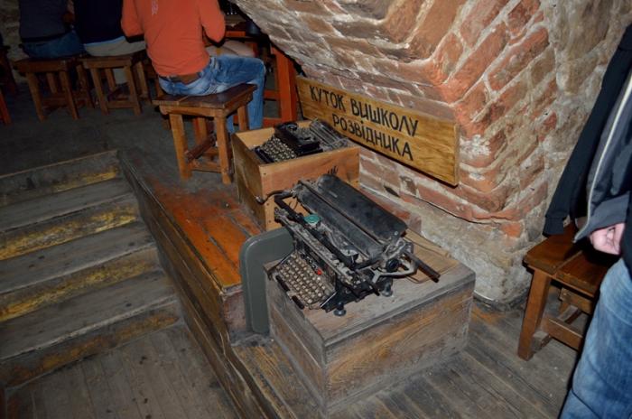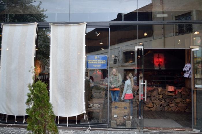 На рыночной площади я предложила дочке найти подпольный ресторан «Криївка». Вывески нет, ресторан расположен в подвале старого дома, вход через старый затёртый подъезд, в котором нужно постучать в нужную дверь. Дочка не нашла, пришлось помогать. И когда боец на входе через окошко в двери запросил пароль, тоже не сразу сообразила, как нужно ему ответить. А вообще на входе забавно все выглядело, диалоги у артистов продуманы, а иностранцев много, поэтому мы насмеялись от души.