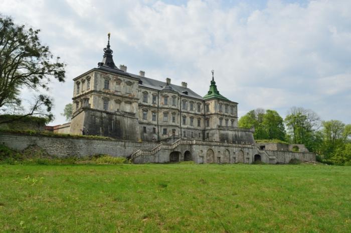 Следующий замок Подгорецкий, расположен в 20 км от Олеського. Там вовсю идут строительные работы, пока реставрируют фасад и крыши. В советские времена в замке был туберкулёзный санаторий, как внутри, так и снаружи практически все уничтожено. Ещё в 70-х годах, когда там снимали фильм про 3-х мушкетёров, замок был в ужасном состоянии.