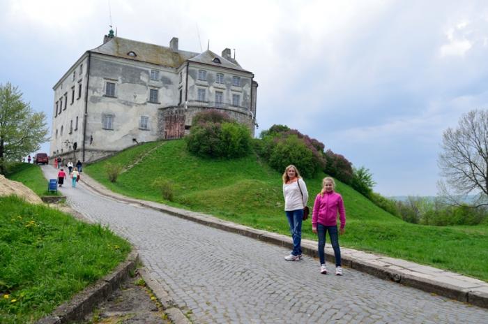 Следующий день мы посвятили трём замкам «Золотой подковы». Мы решили посетить только ту часть замков, которые были в одном направлении. Первый на пути — «Олеський замок». Его видно с трассы Киев-Чоп, я много раз проезжала мимо по этой трассе и постоянно на замок не было времени, честно говоря, много времени он не занял. Мы поднялись на гору, посмотрели внутренний дворик, внутри замка находится филиал картинной галереи. Львовяне правильно поступили, разделили коллекции картин и разместили во всех посещаемых туристами замках. В советские времена замок был сильно запущен, до сих пор ему не сделали нормальной реконструкции, делают частями, но судя по всему этот процесс не завершиться никогда.