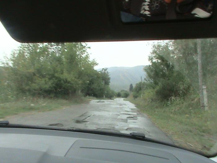На обратном пути удалось разглядеть живописный участок дороги возле горного склона длинной в 250 км. По дороге встретили машину с номерами Великобритании. Эх, гулять, так гулять. Молодцы, что их не пугают расстояния. Кстати это не первые иностранные номера которые я видел по дороге, я не говорю про соседей Киргизстан и Узбекистан, как-то в городе видел стоял внедорожник с номерами Австрии, по моему, тоже не хило. По дороге можно увидеть колорит южного Казахстана. В Саркане республиканская трасса проходит через фруктовый рынок. И вот так бывает! Мы не смогли не остановиться. После чего машина напоминала ташкентский поезд. Вообще администрации города отдельный привет за сообразительность. На подъезде к городу асфальт заканчивается, и начинается гравийка с огромными речными булыжниками, что подвеска нашей машинки начала умолять сбросить скорость. Правильно, нечего гонять! Проезжали через аул, который заново отстраивался, очевидно, после сели.