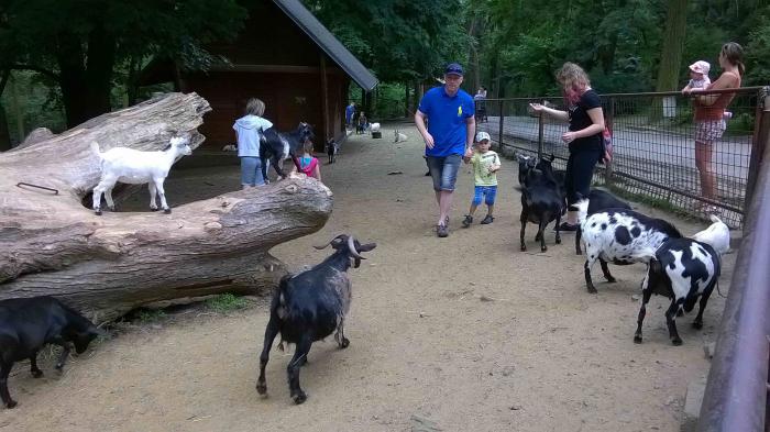 Особо запомнился огромный загон с козликами всех размеров. Чтобы их кормить, тут стоят автоматы с каким-то комбикормом, горсть стоит 10 корун (25 руб). Один особо предприимчивый козлик дежурил здесь постоянно. Остальные ходили за толпой в центре вольера