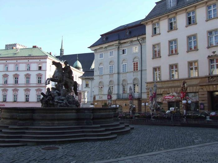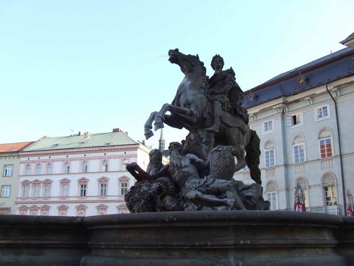 Горни Наместни, верхняя площадь города, фонтан-памятник основателю Оломоуца Гаю Юлию Цезарю. 18 век