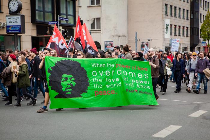 Мы вышли на улицу и услышали громкую музыку и крики на немецком через рупор. Сначала посмеялись, что ребята оказывается тоже отмечают первомай. А оказалась, что мы попали на какой-то парад то ли коммунистов, то ли беженцев, борющихся за свои права, то ли еще кто. Мы так и не поняли. Но на всякий случай прижали к себе свои сумочки поближе и прибавили ходу подальше от этого шествия.