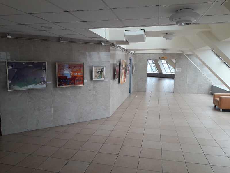 Картина в коридоре с изображением здания библиотеки: