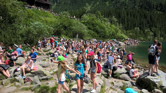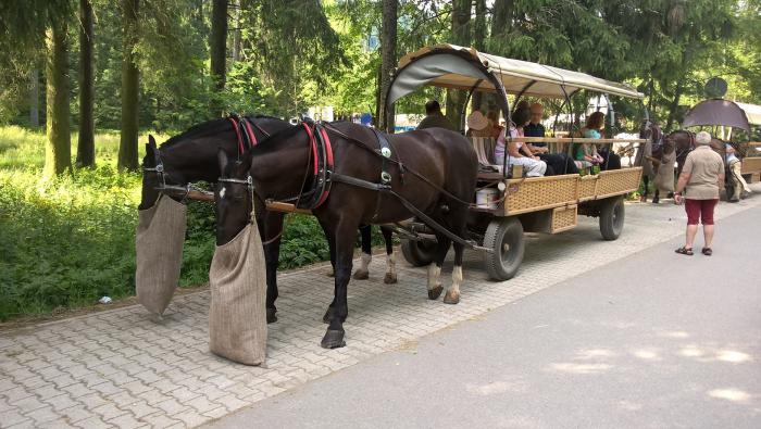 Так как отпуск был небольшой, все дни были расписаны. На первый день у нас было запланировано самое сложное, это поход к озеру Морское Око. Морское Око — это озеро, официально входящее в число самых красивых озер на планете. О нем писали журналисты «The Wall Street Journal», а правительство Польши законодательно объявило его национальным достоянием страны, является одним из главных трекинговых достопримечательностей Закопане. Путь от входа в парк до Морского Ока составляет 9 км и занимает по оценкам составителей маршрута около 2 часов 20 минут, в реальности не менее 3-х часов. Если нет желания топать пешком, то можно поехать на повозке. Стоимость проезда на лошадях — 60 злотых вверх и 40 злотых вниз. Но идти все равно придется, так как лошади не довозят примерно 2 км до озера.