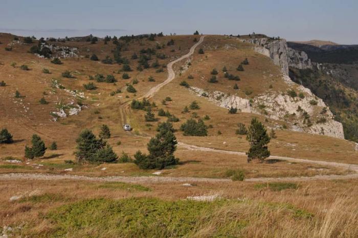 Многие дороги по горам в Крыму проходят по территории заповедников, закрыты шлагбаумами, посему необходимо знать «откуда-куда-с кем- и зачем». Кажется, что Крым не такой большой и везде можно доехать автобусом. Увы, это не так. Когда-то и сюда доходил автобус, теперь можно добраться или на личных (своих-чужих) колеса, или топ-тобусом.