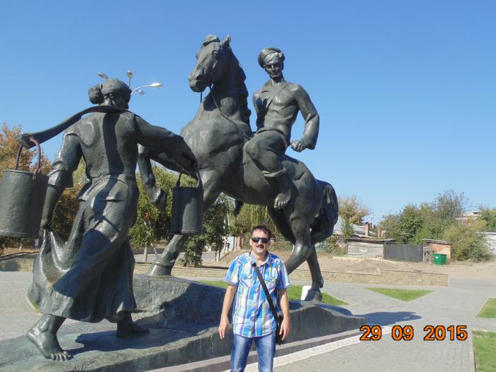 Еще раньше в одноклассниках увидел фото одноклассника сына у интересного памятника, связанного с казачеством.Спросил у его папы, оказывается, они родом со ст.Еланская Ростовская обл.В музее Шолохова у экскурсовода спросил: а ст.Еланская входит в комплекс музеев Шолохова? Нет, но там остались декорации после съемок фильма Тихий Дон режиссера Урсуляк. Ну а что, мы проехали почти 900 км, до Еланской 30 верст-не проблема