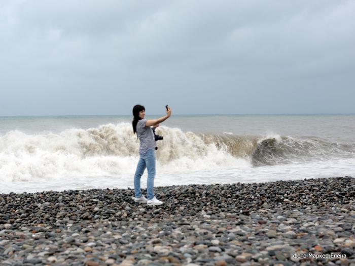 Народ активно фоткался на фоне волн.