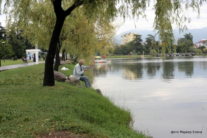 Представление в дельфинарии начиналось в семь часов. Недалеко от дельфинария обнаружился славный пруд. Рыбаки ловили в нем рыбу. При мне один удильщик вытащил приличную кефаль.