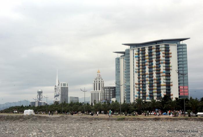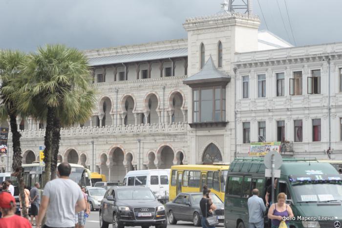 Утром нас разбудил сильный дождь. Пока мы завтракали, дождь почти прекратился и мы, обув сланцы и взяв зонтики, отправились знакомиться с Батуми. Сразу потрясла набережная – очень широкая, зеленая и ухоженная. Набережная фантастическая! Мечта любого курортника.