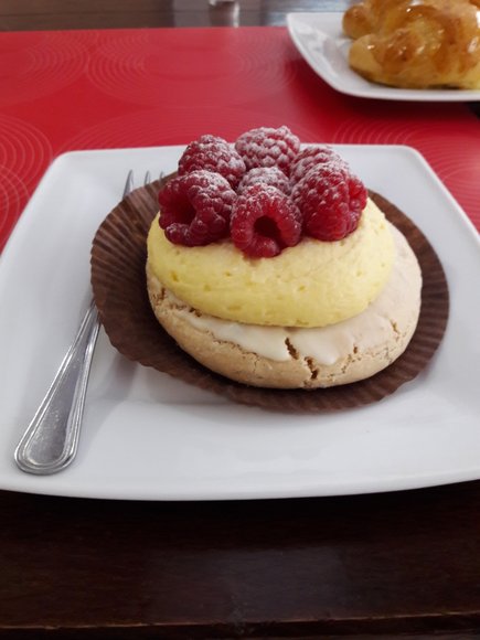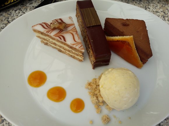 По времени мы попали очень удачно-посмотрели смену караула у регалий. Затем на трамвайчике доехали до остановки, ближайшей к кондитерской «Жербо». Несмотря на приятную обстановку внутри, решили посидеть на улице, заказав невероятное количество сладостей.