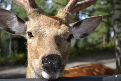 Как обычно, куча указателей, заблудиться невозможно. Весь парк разделен на несколько зон- Сафари, Водный мир, Парк развлечений, Мир Обезьян. Купили билетики и поехали к зверушкам. Здесь можно выйти из машины и покормить специальным кормом за 2евро всяких копытных. Посетители дружно отгручивали антенны с машин, что бы чьи-нибудь мохнатые лапки их не выломали.