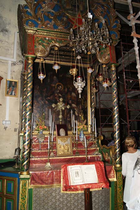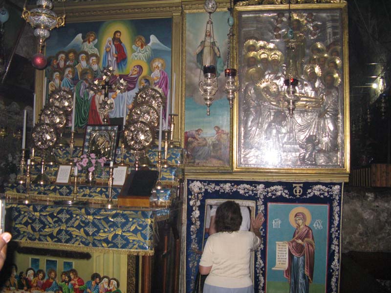 Здесь находится капеллы, где покоится прах родителей Девы Марии и ее мужа Иосифа. Спустившись вниз мы прошли к гробнице Марии, освященной свечами православных церквей. Там же в каменном киоте находится икона Божией матери, считающаяся чудотворной.